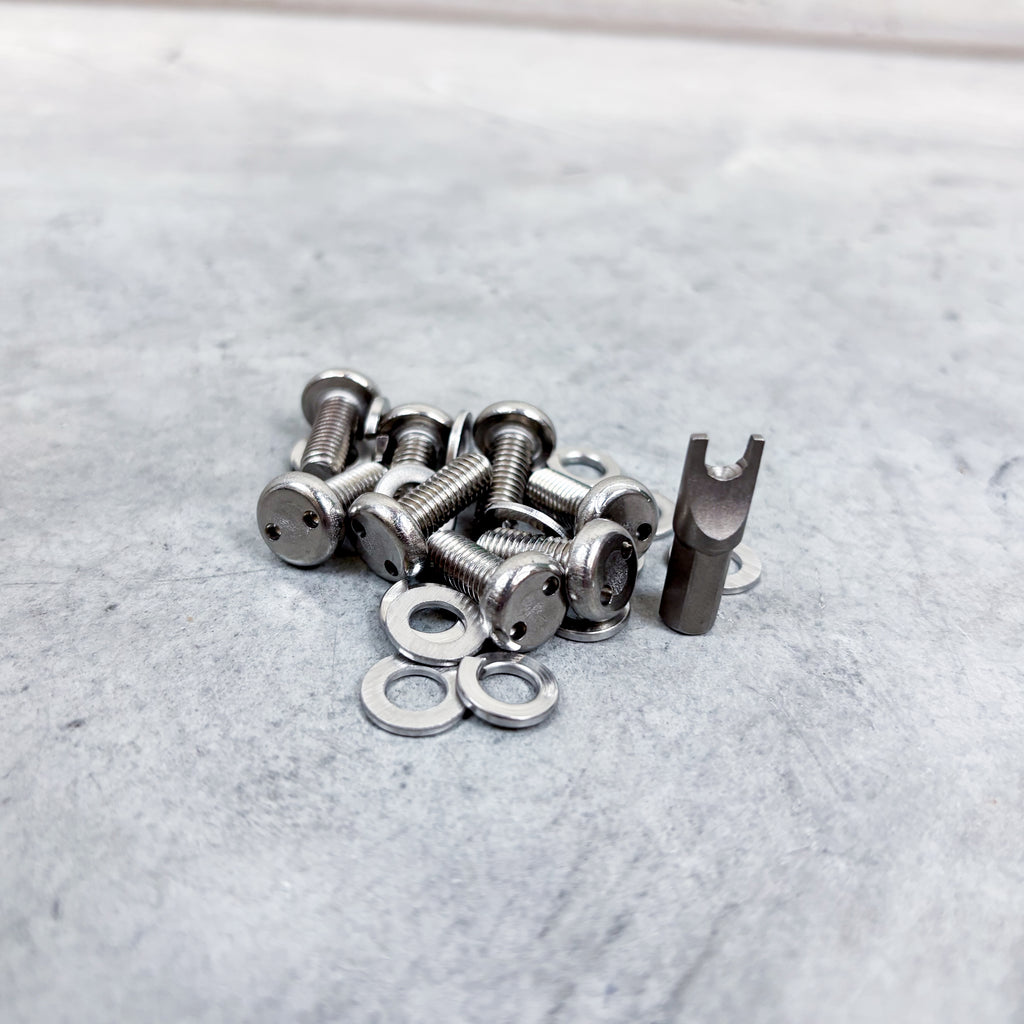 - 8x Stainless steel M6 x 16mm security bolts